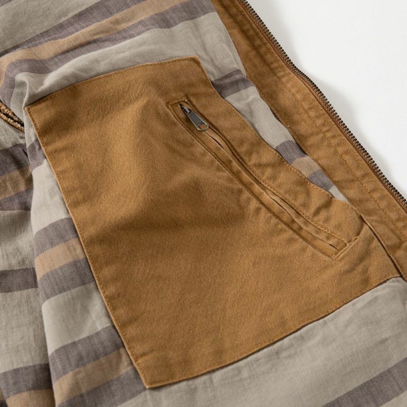 コットンのスレキ裏地を採用しているので秋から春先までロングシーズン活躍。寒い時期は厚手のスウェットやニットを着込むことで防寒でき、地厚なダック生地が風を防ぐことで快適に着用できます。
