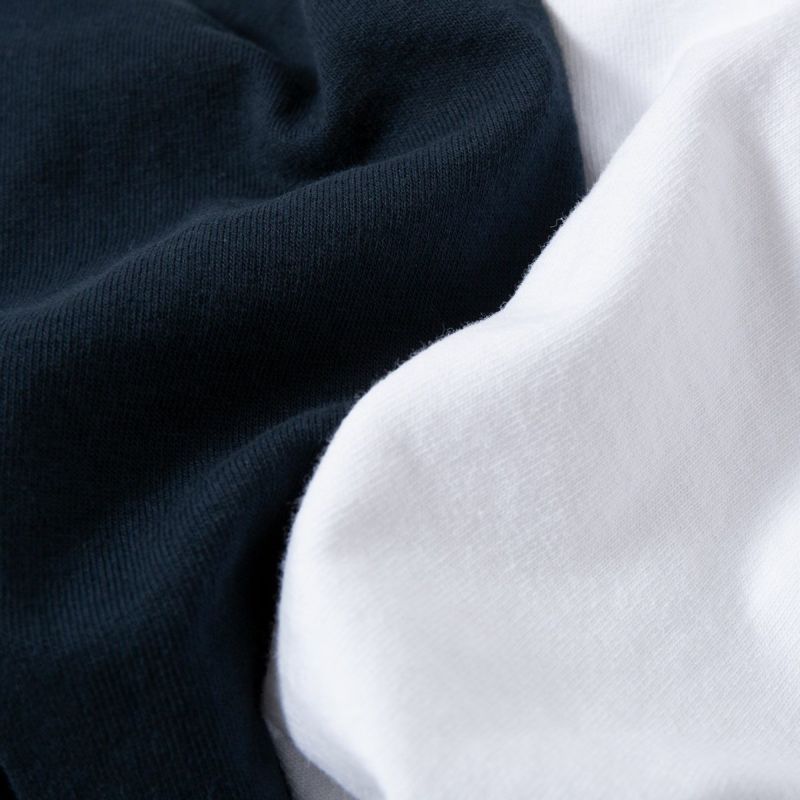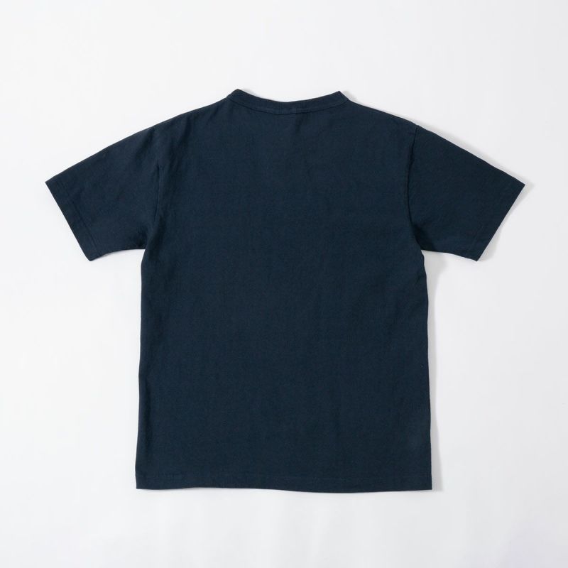 カサっとした米綿7ozのへヴィーウエイト、胴周りに継ぎ目のない丸胴編みに 頑強なバインダーネックといった、耐久性と着心地を兼ね備えたつくりは秀逸です。