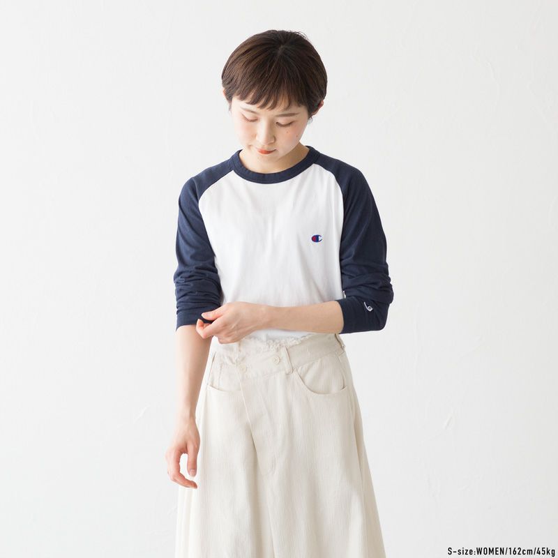 チャンピオンを気軽に楽しめるエントリーライン“BASIC”のラグラン長袖Tシャツ。