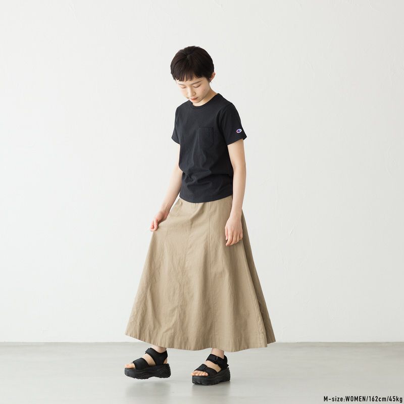 チャンピオンの定番ポケットTシャツ。女性らしいキレイなシルエットです。