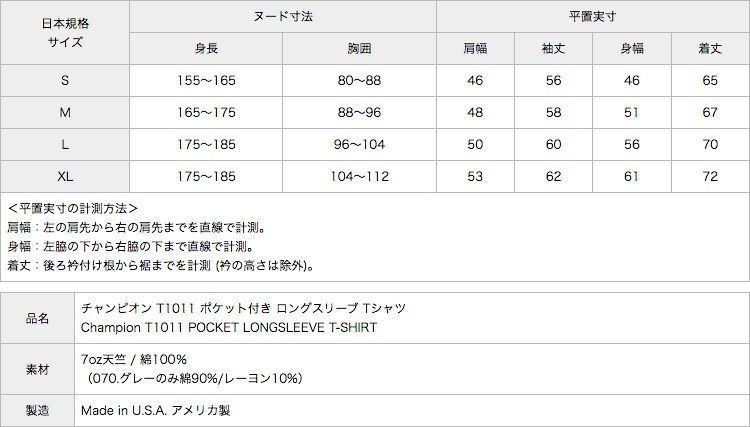 他の画像を見る Champion T1011 元祖ヘビーウエイトTシャツの長袖モデル。 チャンピオン T1011 ポケット付き ロングスリーブ Tシャツ C5-P401 [ネコポス可] 販売価格 ¥ 8,690 税込 カートに入れる お気に入りに登録する