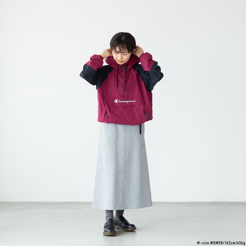 80~90年代のストリートスポーツをテーマに、当時の雰囲気を再現したアイテムを展開するチャンピオンの“アクションスタイル”。筆記体ロゴが主張するアノラックパーカーです。長時間の雨でも撥水し続け、洗濯耐性も高い、東レが開発した「kudos」耐久撥水素材のナイロンタフタをボディに採用。メッシュ裏地は肌離れがよく、インナーや肌との間に空間ができやすいので通気性も期待できます。一枚着するだけでサマになる存在感、コートやジャケットの中着にすればクールなレイヤードが完成する人気アイテム。