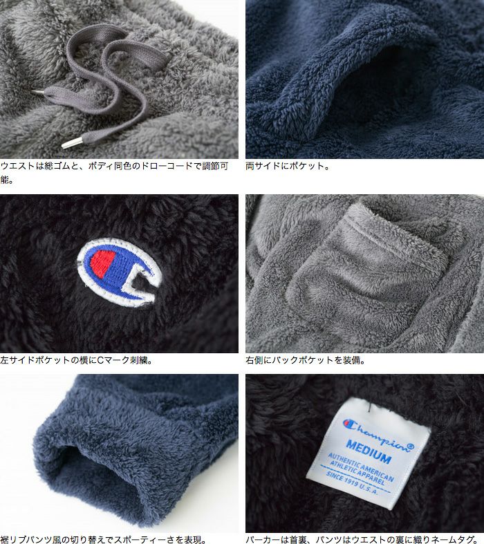 【40%OFF】 XSサイズ チャンピオン シェルパ フリース 上下組 ジップパーカー C3-L615 ロングパンツ C3-L216 セットアップ トレーニング ルームウェア 部屋着