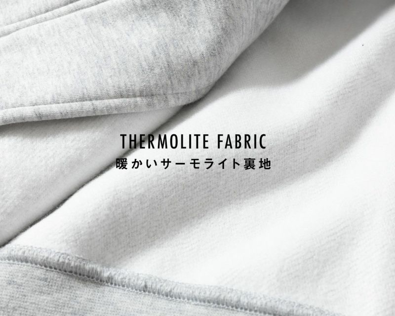 表面には雨を弾く撥水加工を施し、裏地のサーモライトファブリックで保温性を確保。さらに透湿性を持たせることで湿気を逃がして快適な衣類内環境を保ってくれます。