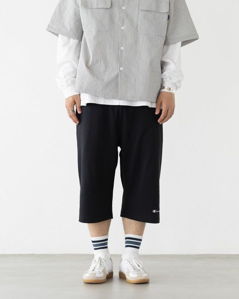 左裾にChampion(チャンピオン)ロゴ刺繍を施したハーフパンツ。