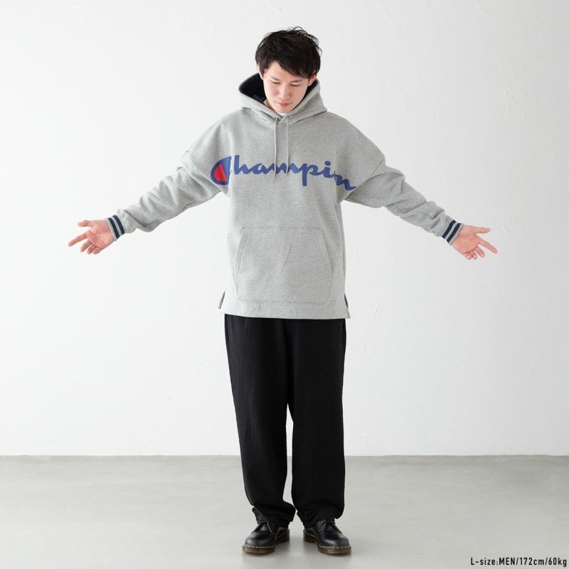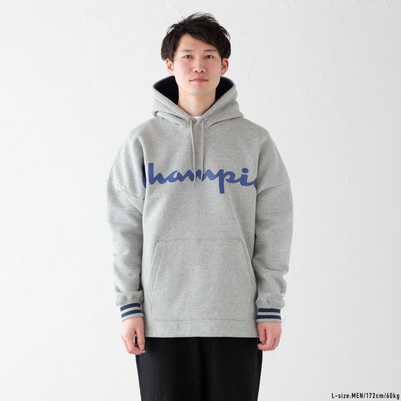 ビッグChampionロゴの肉厚スウェットパーカー。