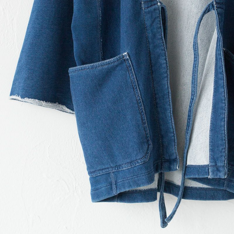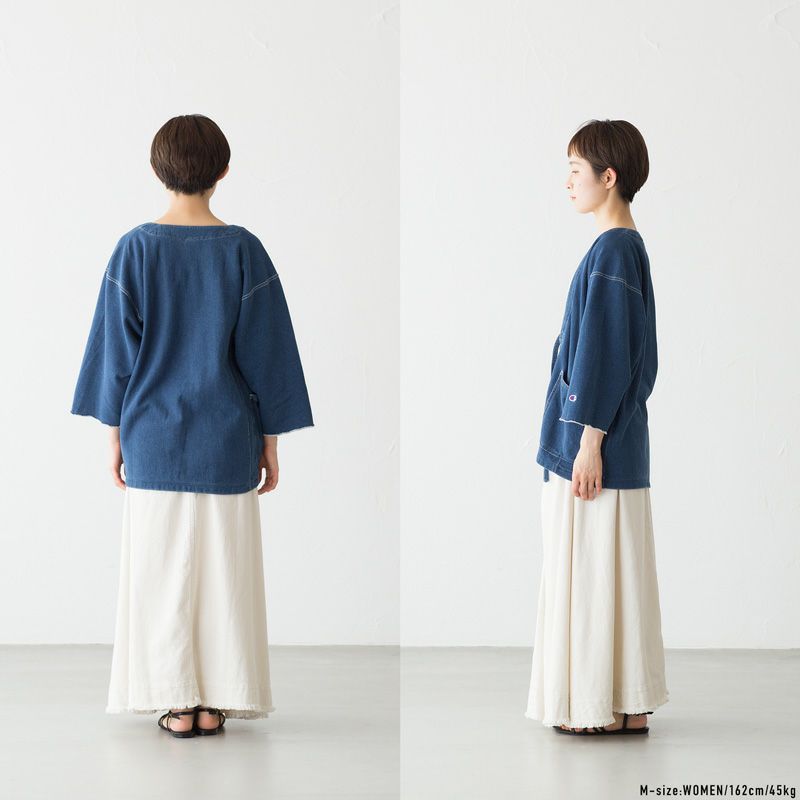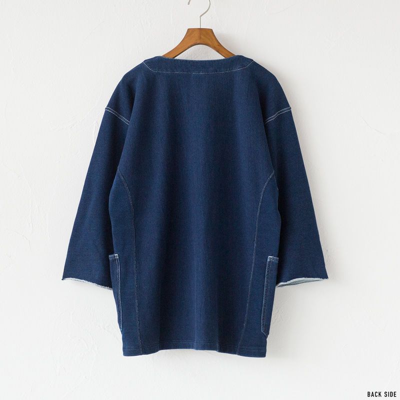不朽の定番REVERSE WEAVEからロープインディゴ染色したニュアンス豊かなプロダクト。10ozのスウェットで仕立てた軽い着心地のライトローブ。モダンかつクラシカルな風合いを封じ込めた新鮮なシルエットのスウェットアイテムです。