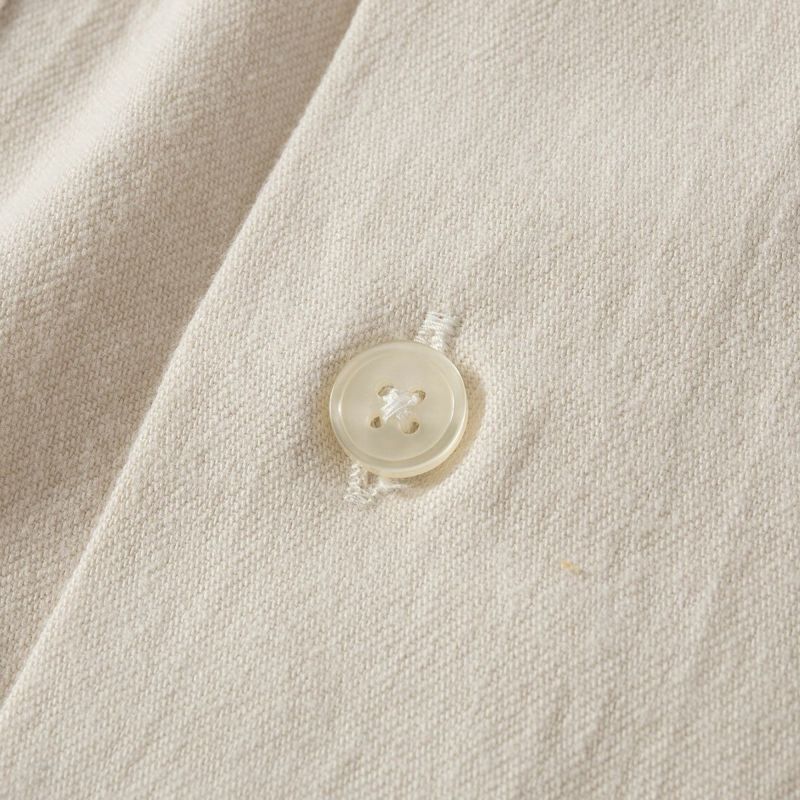 日本人体型に合わせてバランス調整したパターン、クラシカルな印象のディテールを日本国内での丁寧な縫製で実現。時間をかけて織られた地厚で丈夫なコットンツイル生地は着込むうちに味わいが増してきます。
