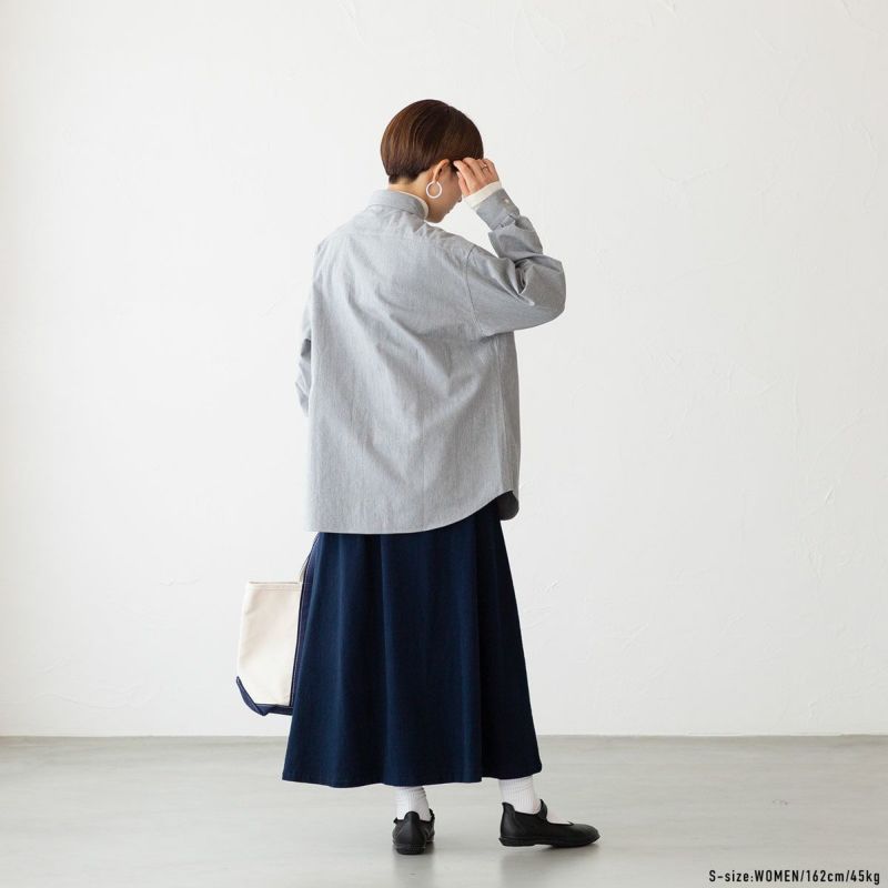 普段のカットソーやボトムスに合わせてラフに着崩すスタイルがおすすめ。腕まくりしたり、前ボタンを開けてタートルネックやパーカーを着込んだレイヤードを楽しむのも◎。