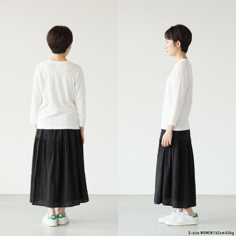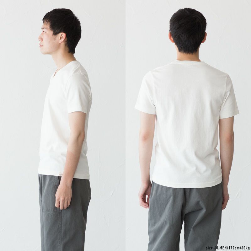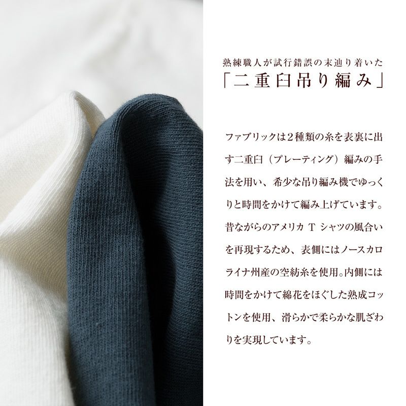 「しっかり・軽やか」二重臼天竺 硬くてハリがあるアメリカTシャツの味わいと、日本人好みの柔らかく滑らかな肌ざわりを両立させた二重臼編み。[七分袖] |