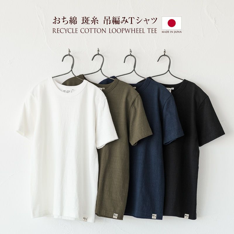 「ふんわり・さらり」落ち綿むら糸吊り編み リサイクルコットンのムラ糸を使い凹凸感のあるナチュラルな表情に編み上げました。[半袖・七分袖] |