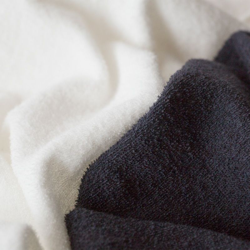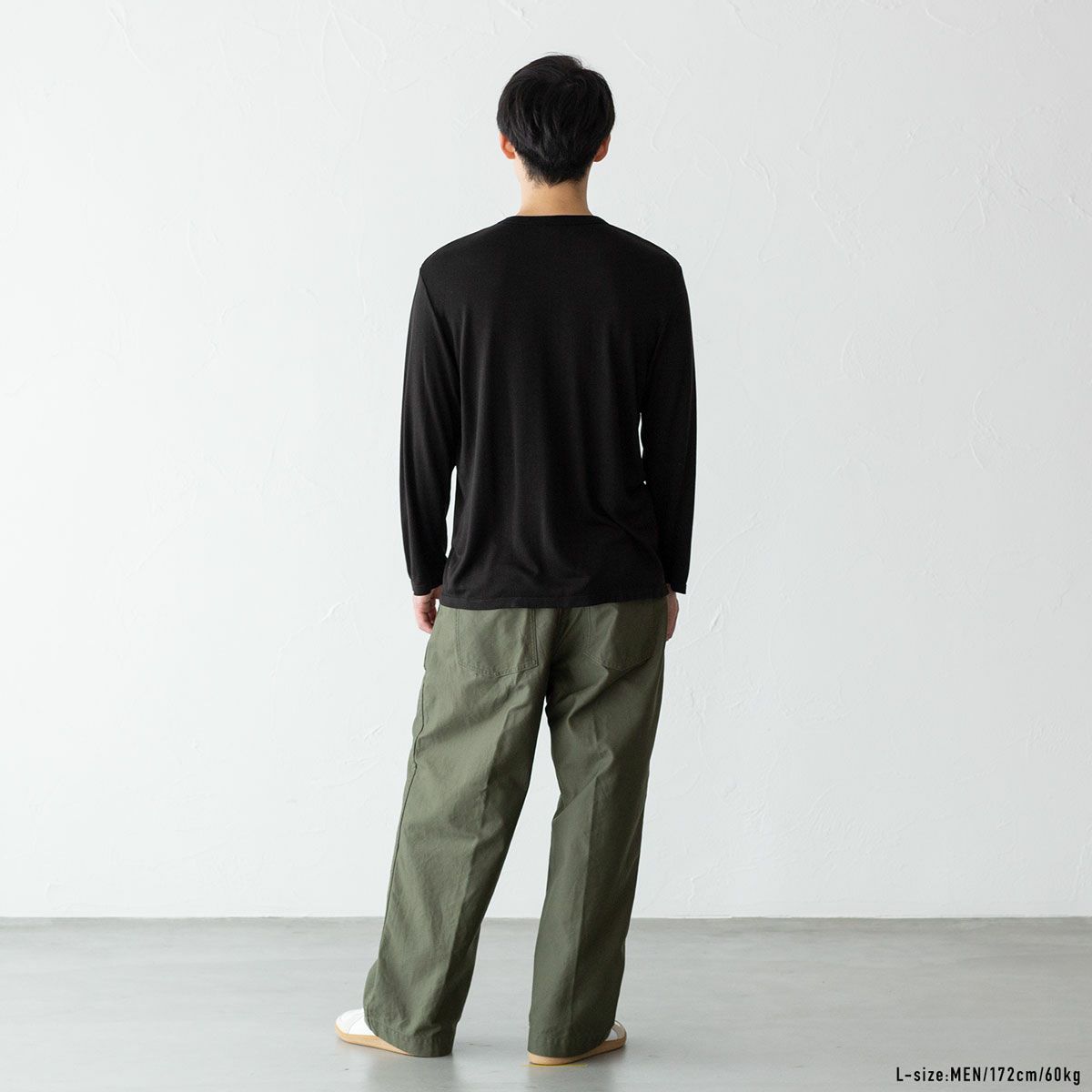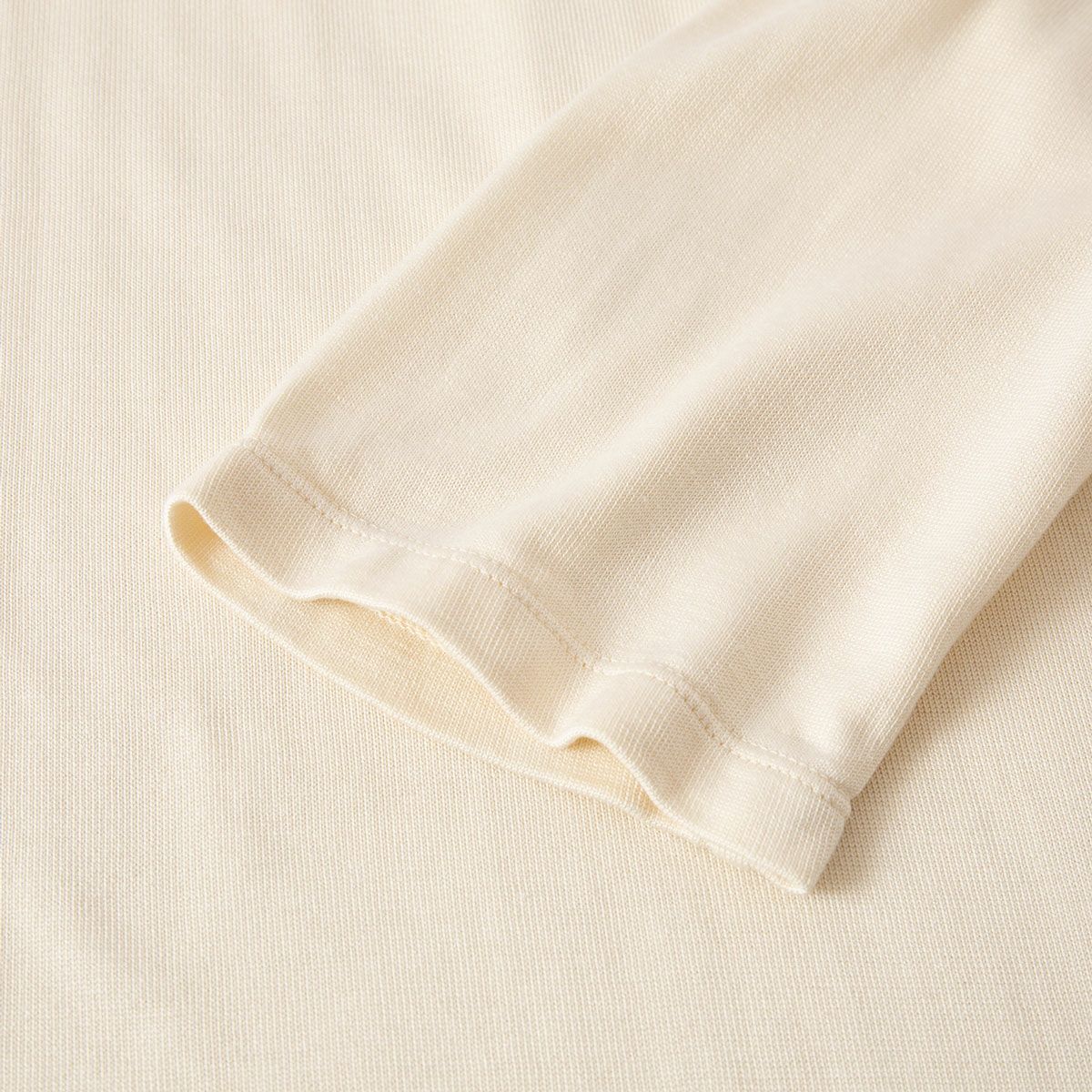 「ふんわり・さらり」裏パイル吊り編み ふんわり軽くて柔らかな風合い、裏パイルによる吸水性と凹凸でさらりとした肌触りを感じられる吊り編み天竺Tシャツ。[九分袖] |