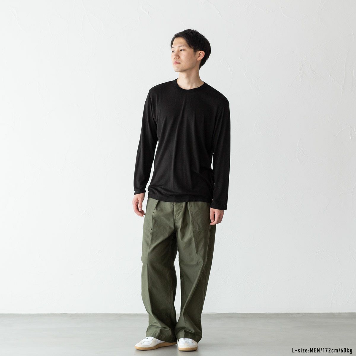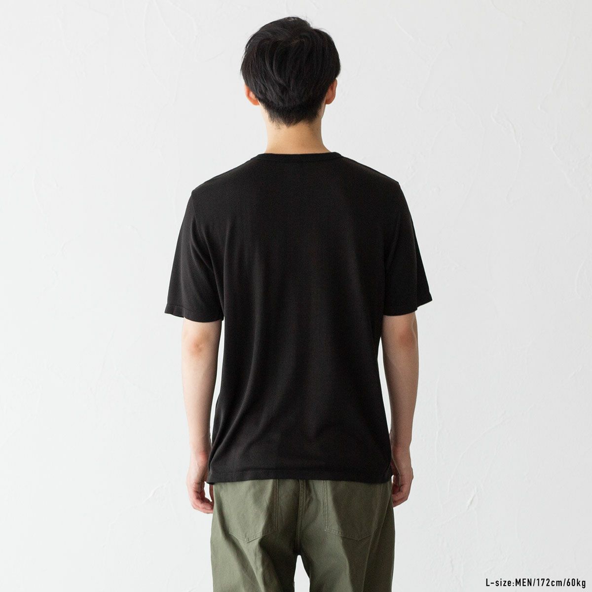 「ふんわり・しっとり」シルク吊り編み天竺 コットンでは生み出せない、とろけるような肌触りや艶感、滑らかなドレープなど、シルクを贅沢に使うことで魅力を存分に味わえる一枚に仕上げています。[半袖・七分袖] |
