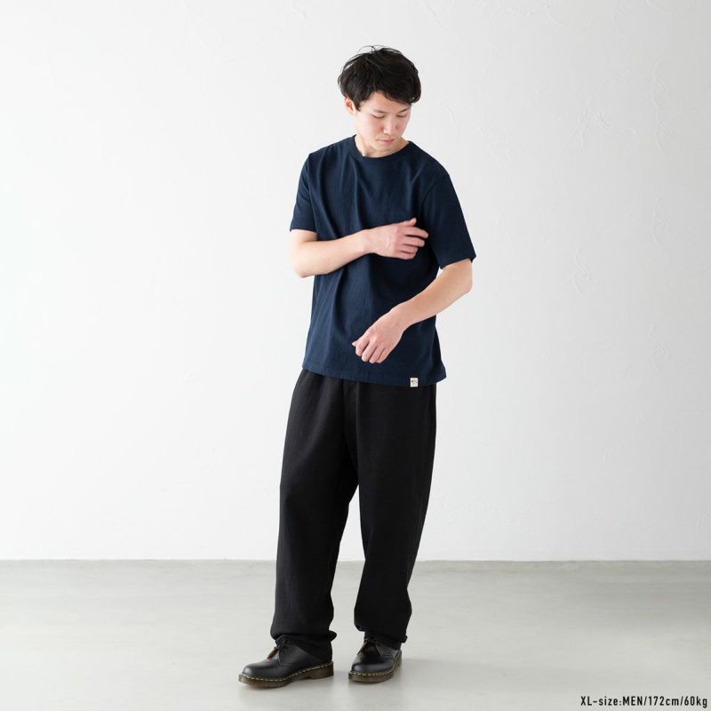 おち綿(リサイクルコットン)の斑糸でさらりとナチュラルな風合いに仕立てた、ネップスの半袖Tシャツ。