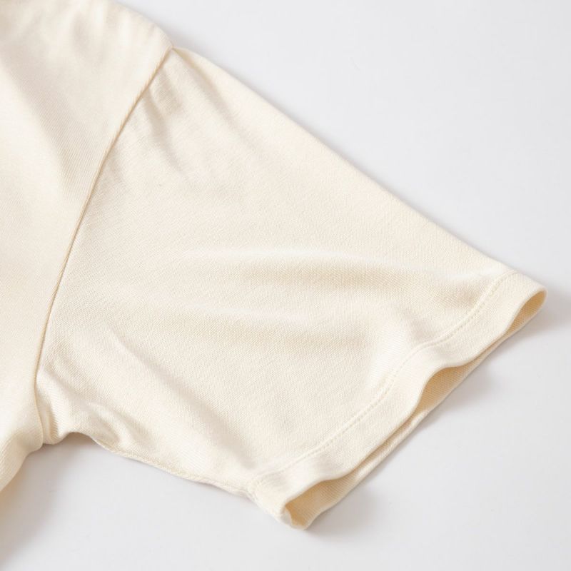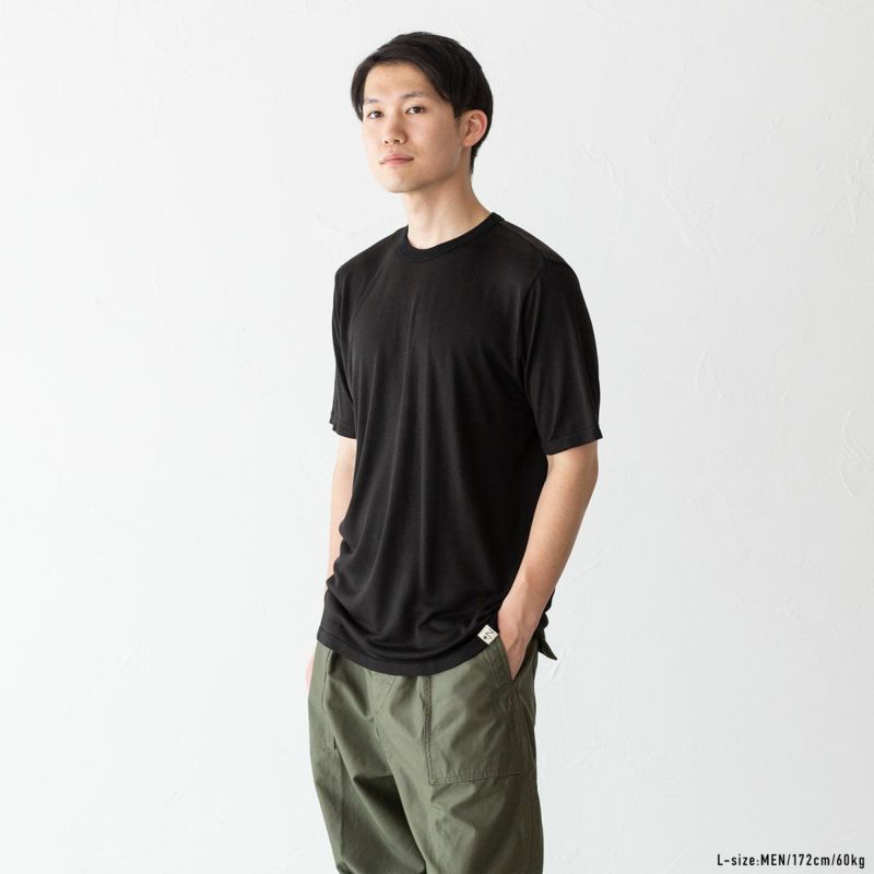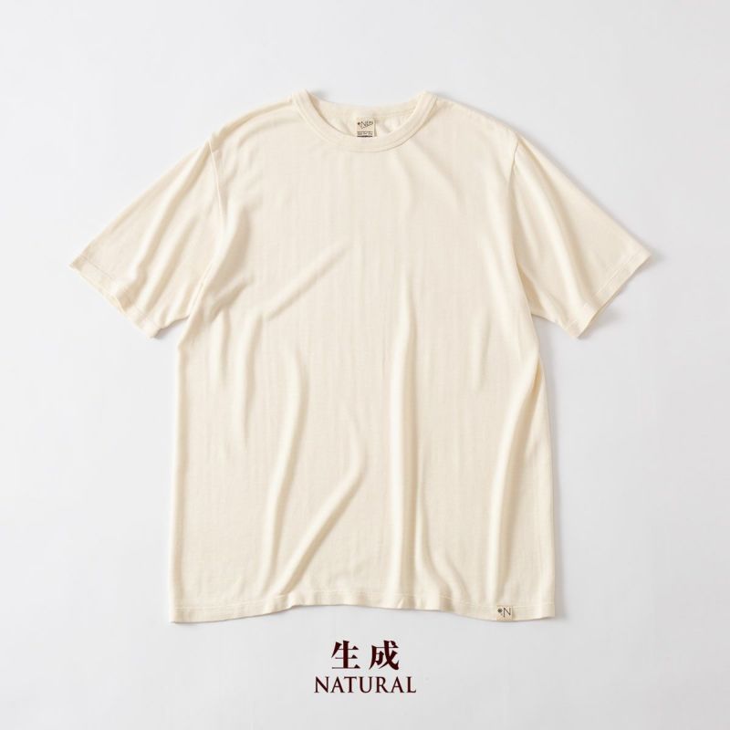 吊り編みによるふんわり柔らかな着心地で多くのお客様から支持されているNEPSのTシャツ。こちらはシルク100%を旧式吊り編み機で編み立てた丸胴天竺の半袖モデルです。