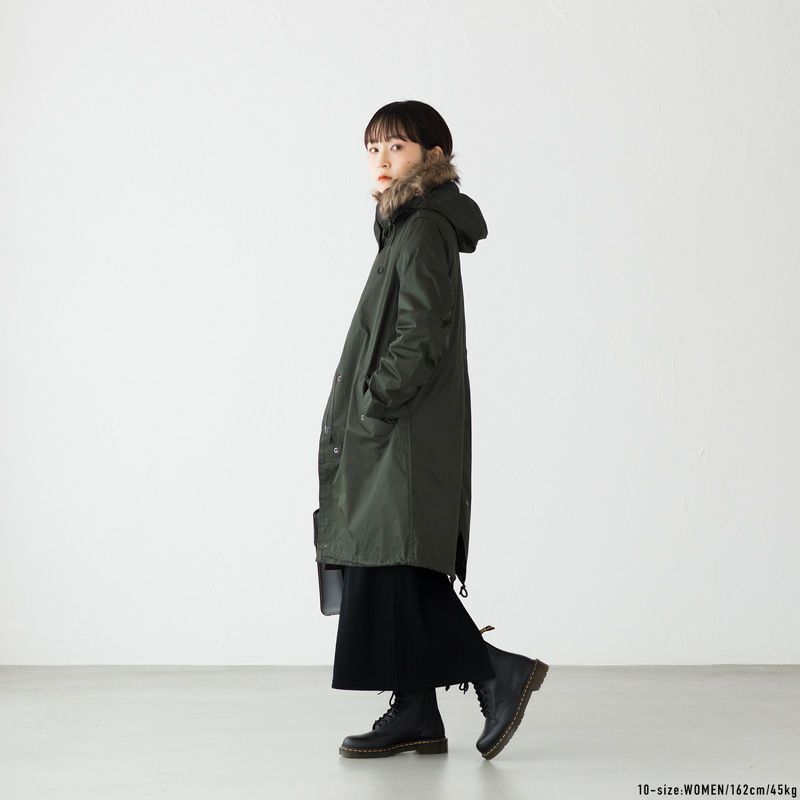 ミリタリーコートにありがちなずっしり感はなく、女性でも着やすい仕様になっています。