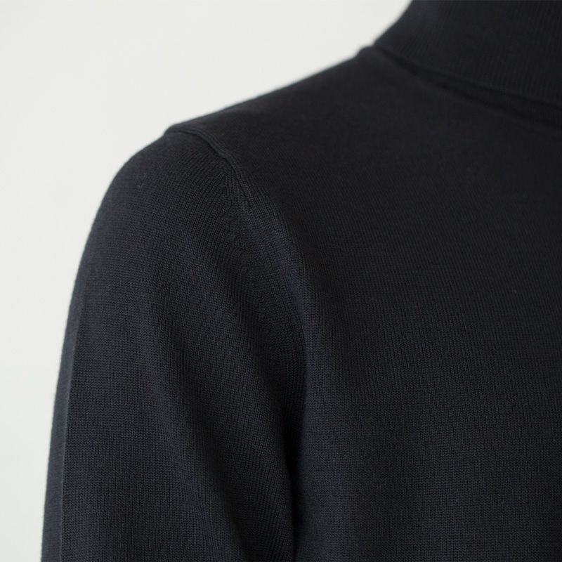 滑らかな肌触りのメリノウールと素朴な風合いのコットンを混紡したハイゲージニットで仕立てたタートルネック・セーター。胸元のローレル刺繍が際立つシンプルなデザインです。ご家庭でクリーニング可能なウォッシャブルウール。一枚着にはもちろん、ジャケットやコートの中着としてもスッキリ着られるボリューム感。フレッドペリーならではの上品な表情を持つアイテムです、いかがでしょうか。