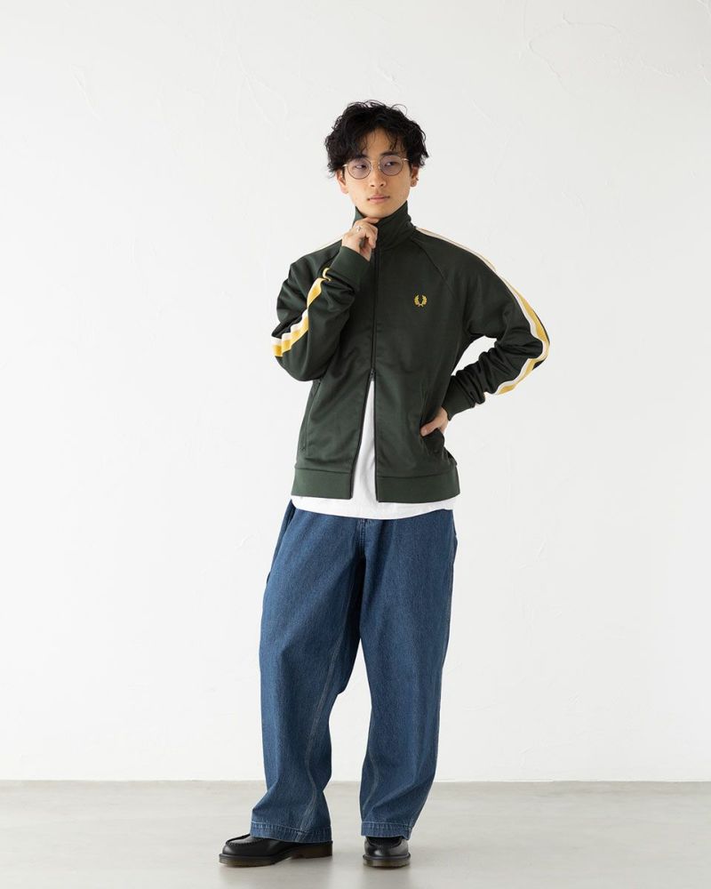 上品で洗練されたモダンなルックスが人気のフレッドペリー トラックジャケットシリーズ。こちらはミニマルなデザインに2色のサイドテープでアクセントを効かせたモデルです。