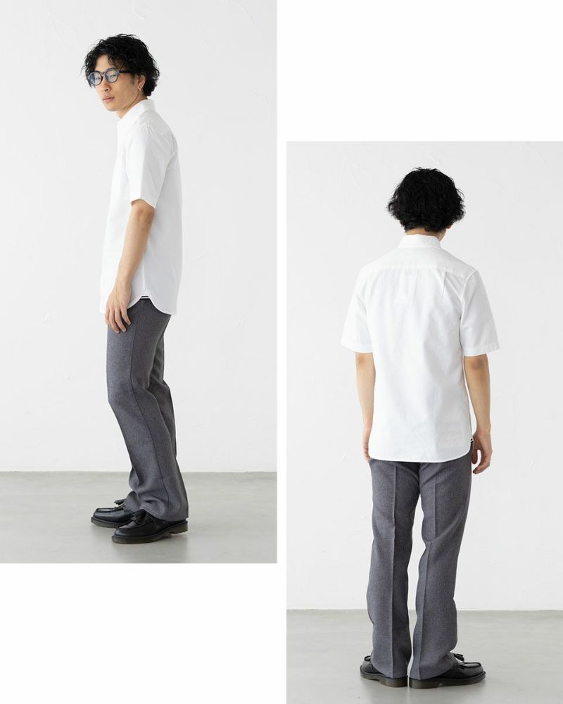 シンプルで上品なルックスながら、やや長めのボタンダウンカラーでエレガントなヨーロピアンスタイルを演出。タックインすればクールビズにも活躍できる守備範囲の広さも魅力。