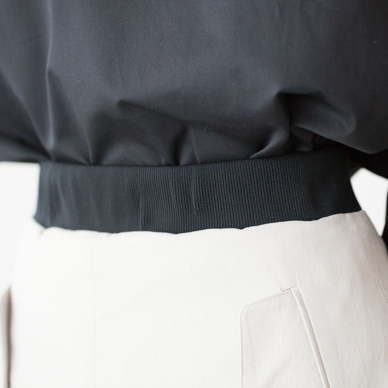 見た目はコットンツイルのようなマットな質感ですが、ポリエステル100%なので着心地はさらっと。ストレッチ&撥水性もある高機能素材◎