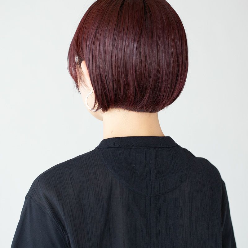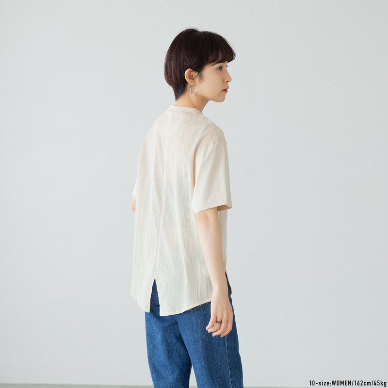 前身頃はTシャツ生地、背中はシボ感のあるシアー生地をドッキングしたカットソーです。