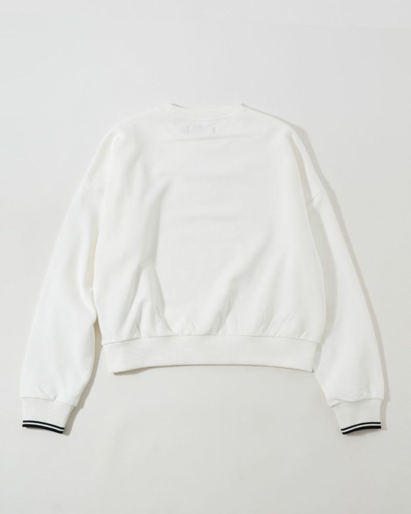 定番のティップラインスウェットを、丈を短くドロップショルダー仕様にアレンジ。女性が使いやすい抜け感のあるシルエットを追求しています。