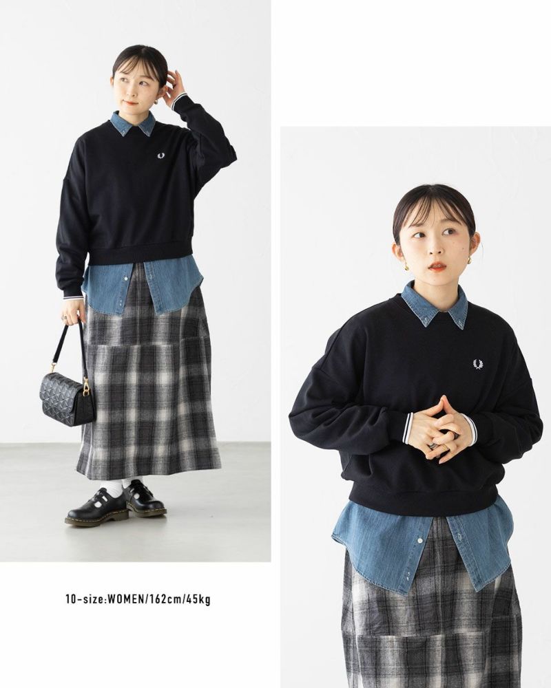 コットンループバックを使用したクルーネックスウェットシャツ。クラシカルな定番アイテムを現代風に再解釈した、フレッドペリーらしいアイテムです。