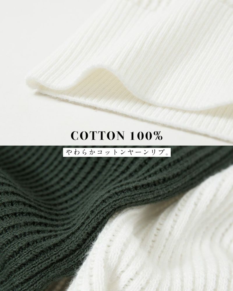 コットンヤーンのメッシュ編みで通気性がよく、夏も快適に過ごせる柔らかいコットンニット素材になっています。