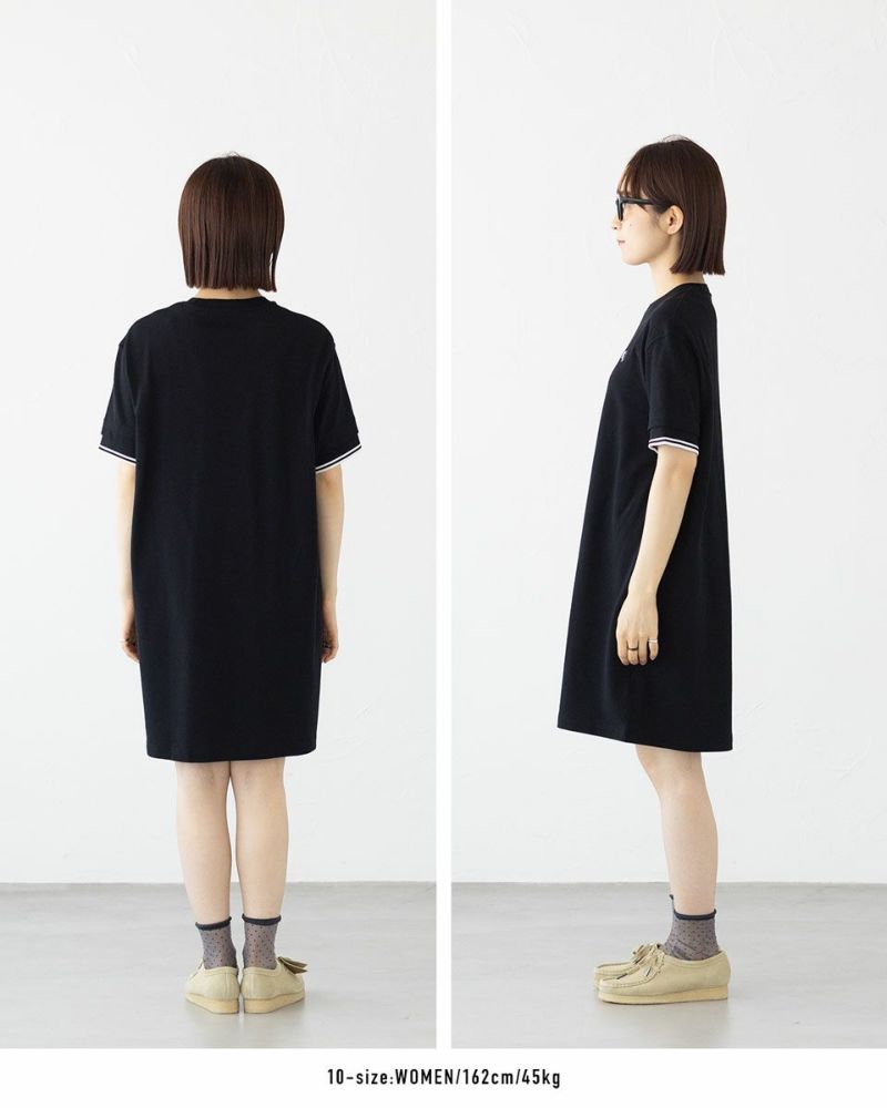 フレッドペリーの象徴的なツインティップデザインを、膝丈のTシャツドレスにアレンジ。