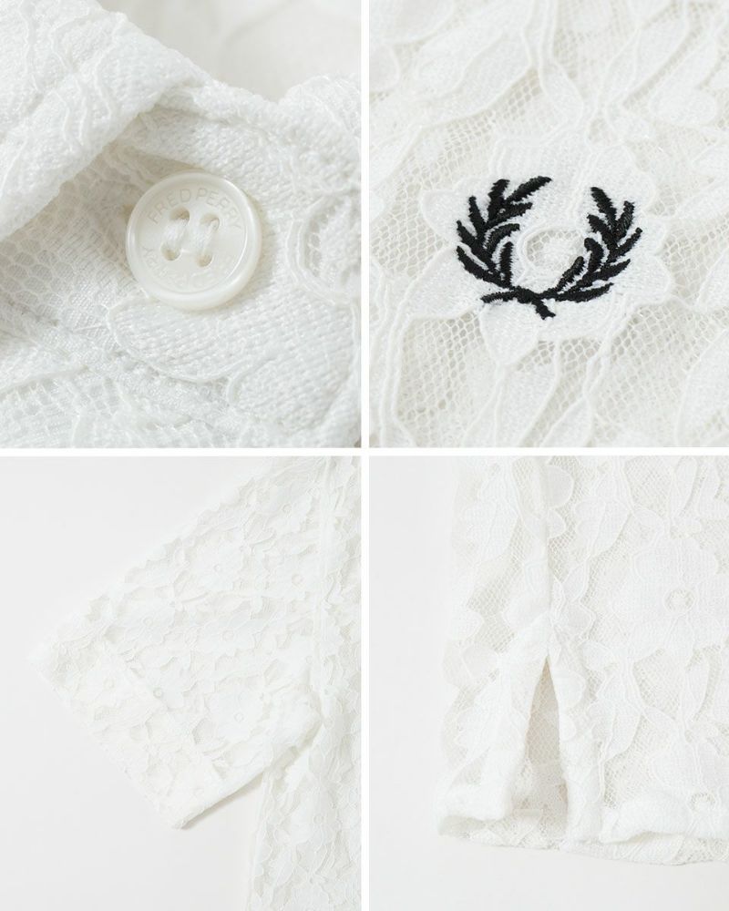 胸元にローレルリース刺繍が入った、花柄の総レースシャツブラウス。