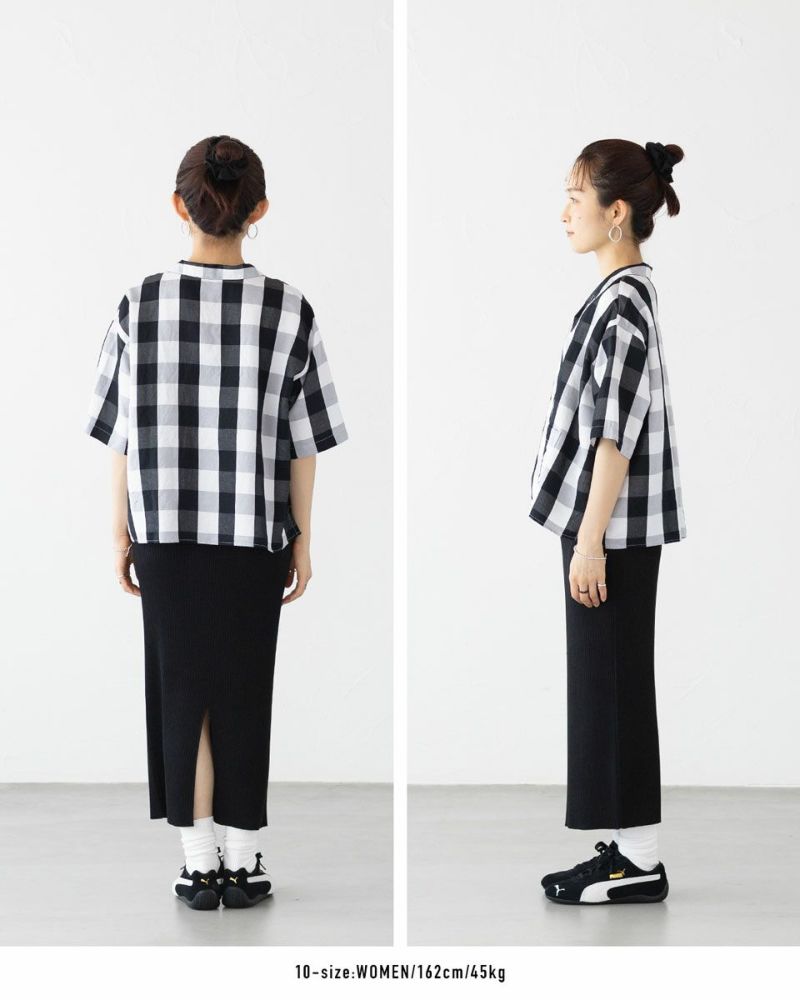 存在感のある大きめチェックながらも、モノトーン配色ですっきり見えするのも嬉しいポイント。今年の夏コーデの主役にしたい大人カジュアルシャツ、いかがでしょうか。
