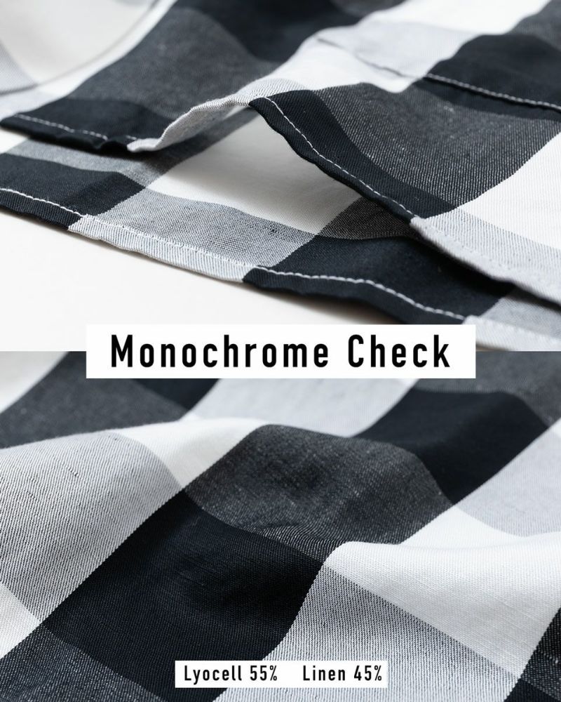 リネンとリヨセルを織り交ぜたナチュラルな風合いに、軽やかで涼感のあるモノクロチェック。