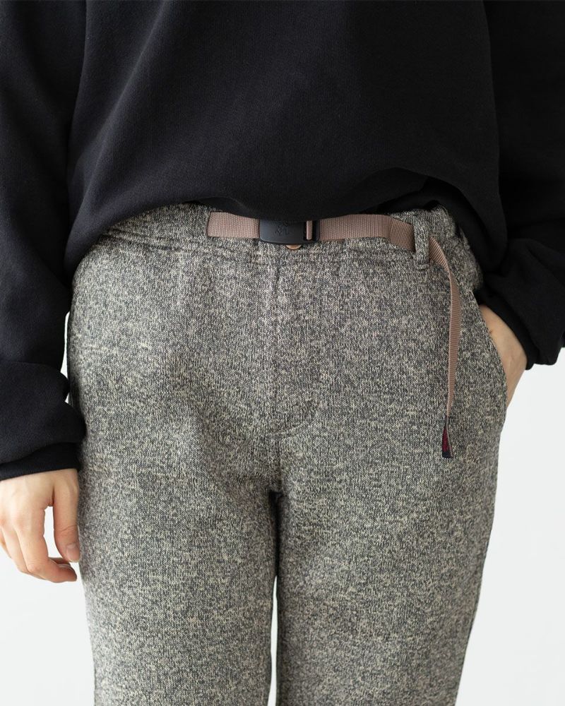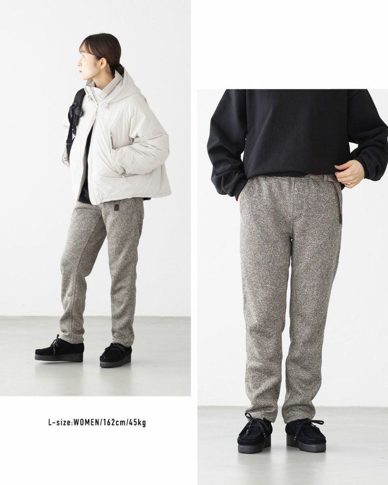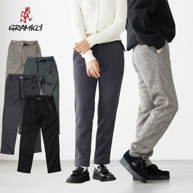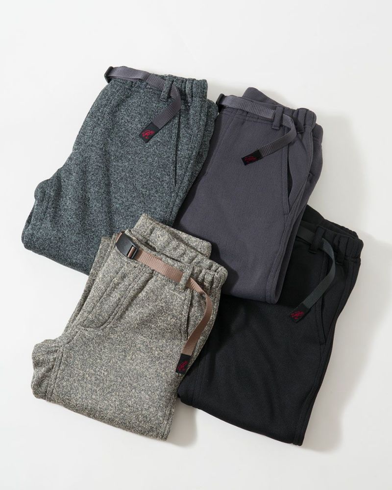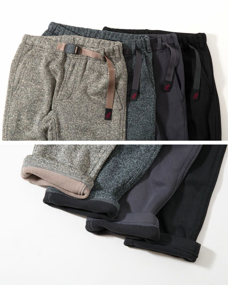 GRAMICCIのボンディングフリーステーパードパンツは、ニットのような見た目とフリースの暖かさを両立した、真冬の寒い時期に大活躍する一枚。