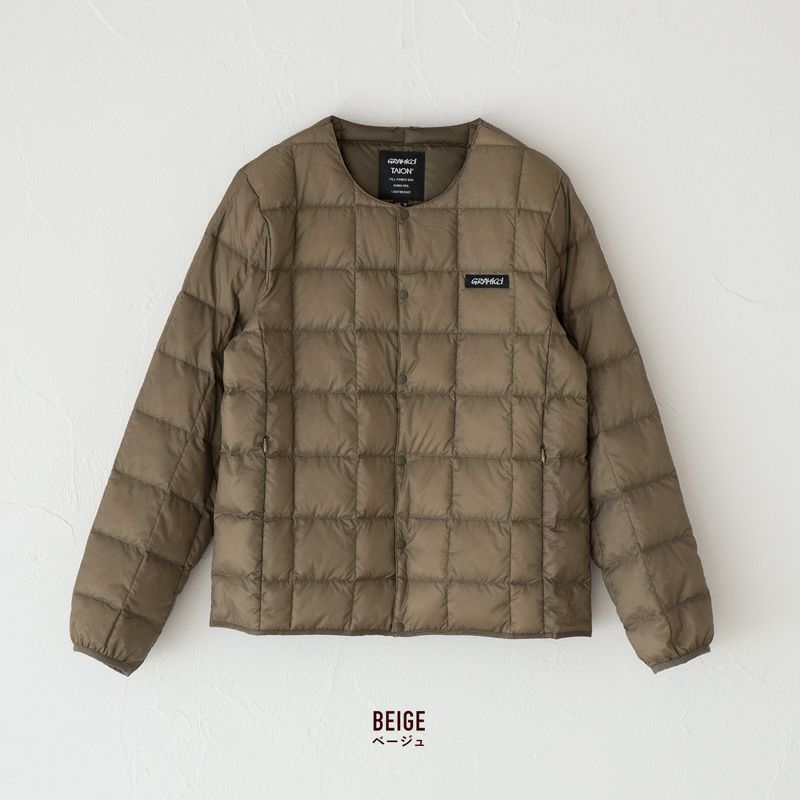 他の画像を見る TAION×Gramicciコラボダウン。 TAION グラミチ インナー ダウン ジャケット Gramicci G2FU-J082-TG タイオン 体温 コラボ ダウン メンズ ノーカラー 販売価格 ¥ 11,000 税込 カートに入れる お気に入りに登録する