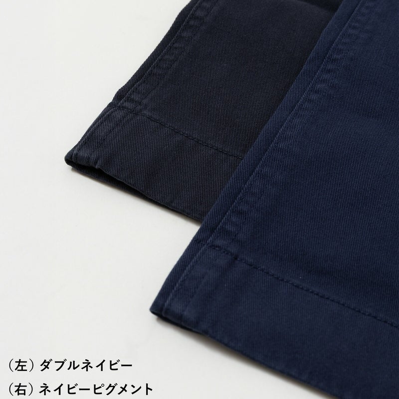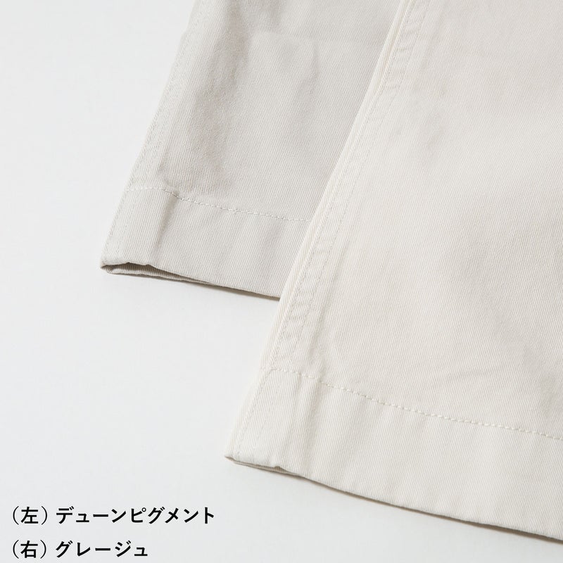 ナチュラルな風合いのオーガニックコットンツイル素材を使用し、程よいハリ感と耐久性が特徴。