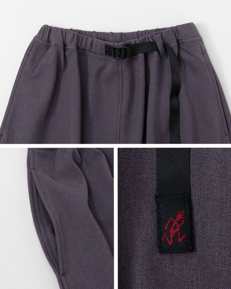 ウエスト部分にはグラミチ定番のウェビングベルトを採用。片手で簡単にサイズ調整ができる仕様で、ベルトを締めたり緩めたりの動作もスムーズです。