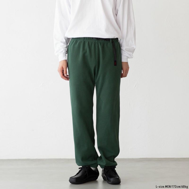 裏起毛で保温性は抜群、クラシカルな裾ゴムのスウェットパンツに、グラミチならではのウェビングベルトが追加され、快適性が向上しています。流行り廃り関係なく長年愛用いただけるアイテムです。