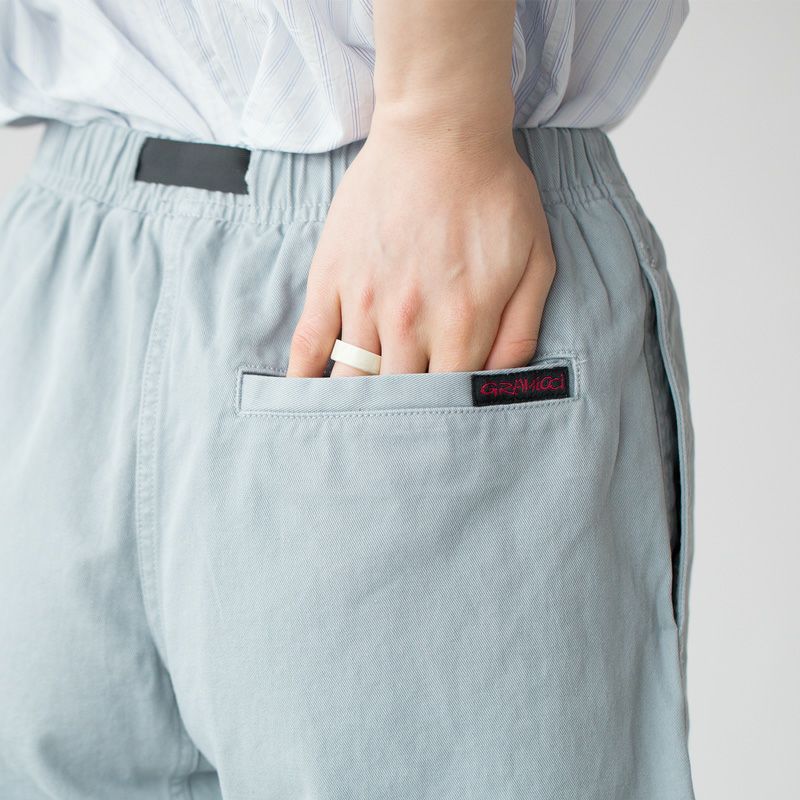 180度開脚できるガゼットクロッチや、片手で調整できるウェビングベルトなどのグラミチらしいディテールはそのままなので、もちろんアウトドアなどのアクティブなシーンにもぴったりです。