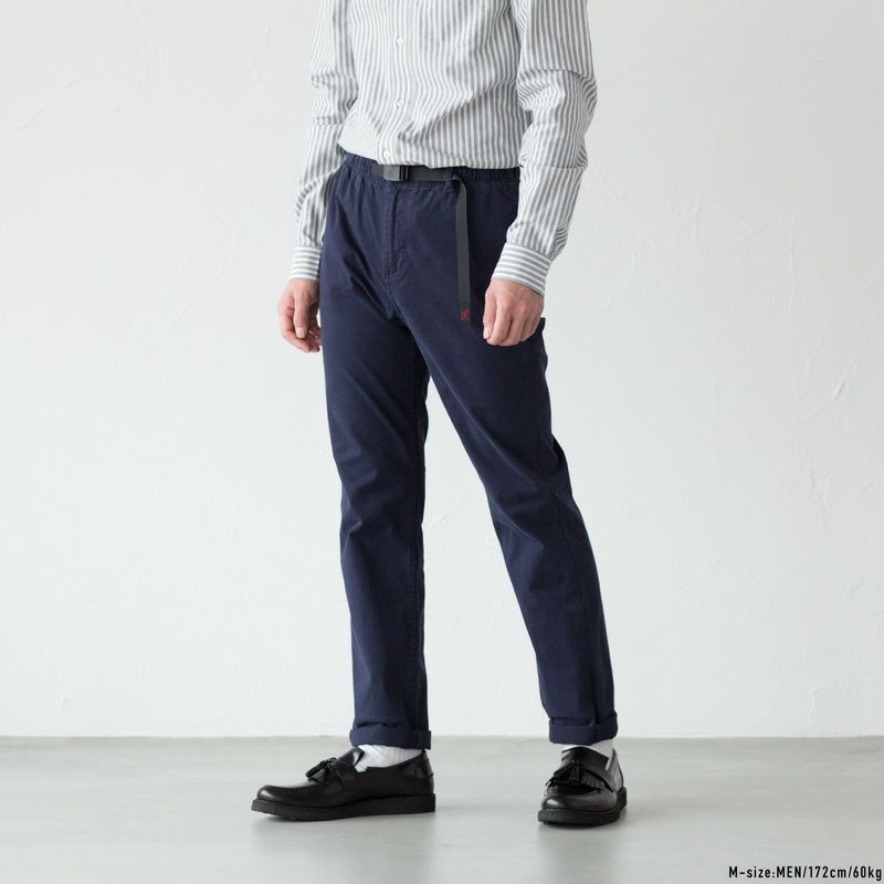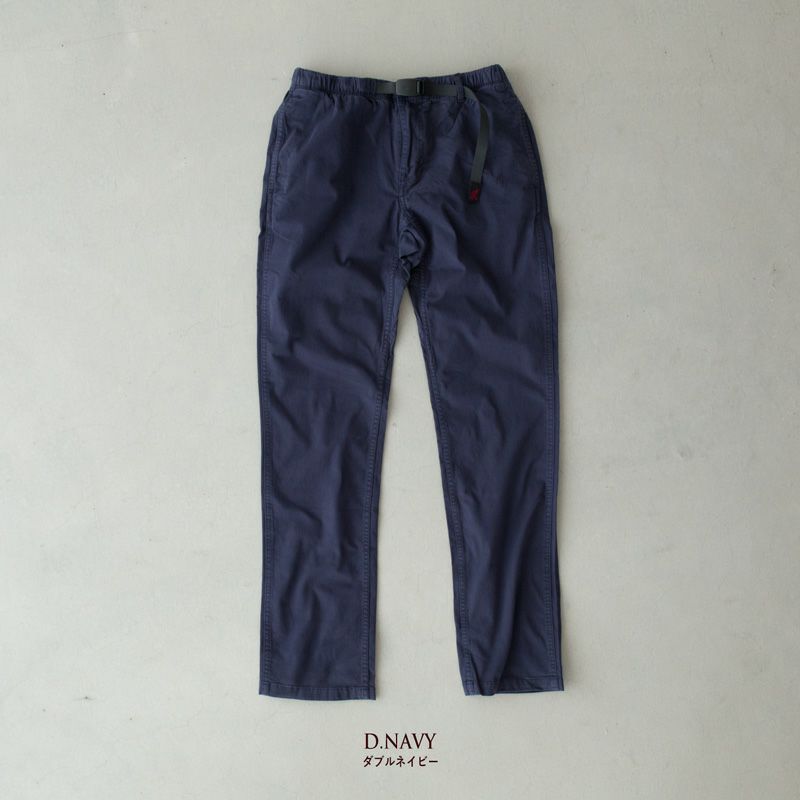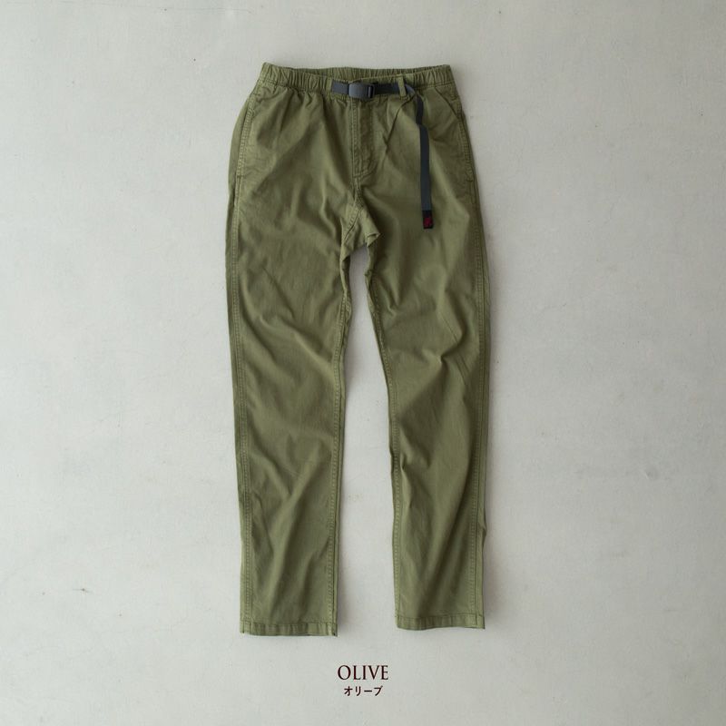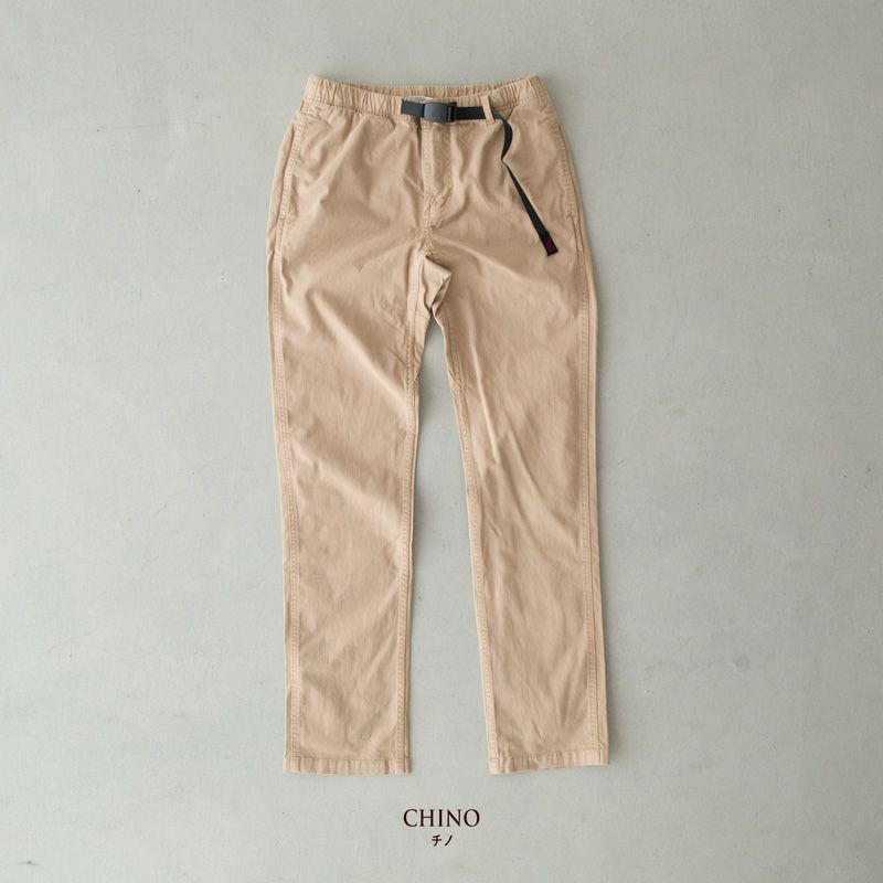 ブランドのルーツであるクライミングシーンにおける機能性を残しつつ、現代のライフスタイルに合わせた細身のシルエットが特徴の、Gramicci定番"NNシリーズ"。NN-PANTは裾にかけて細くなるテーパードシルエットですが、伸縮性に優れ、程よいハリコシのある、オーガニックコットン使用のストレッチツイルを使用していますので、アクティブなシーンにも対応可能です。1年を通して着用いただけるオールマイティパンツです。