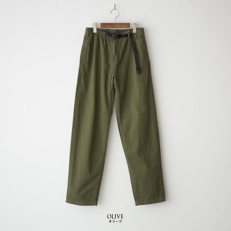 180度の開脚を可能としたガセットクロッチ、片手で調整できるウェビングベルト&イージーウェスト。1980年代、クライマーとしての体験をもとに、クライマーが欲しい機能をすべて具現した革新的なパンツとしてGramicci PANTは誕生しました。また、ヒップ周りにゆとりを持たせ、前開き仕様、バックポケットを左右にするなど、現代のニーズに合わせアップデートしています。耐久性が高く、ハリコシのある、激しい動きにも耐えるオーガニックコットン使用のコットンツイルを使用し、雰囲気のある表情に染め上げています。長年愛され続けるGramicci定番のパンツです。