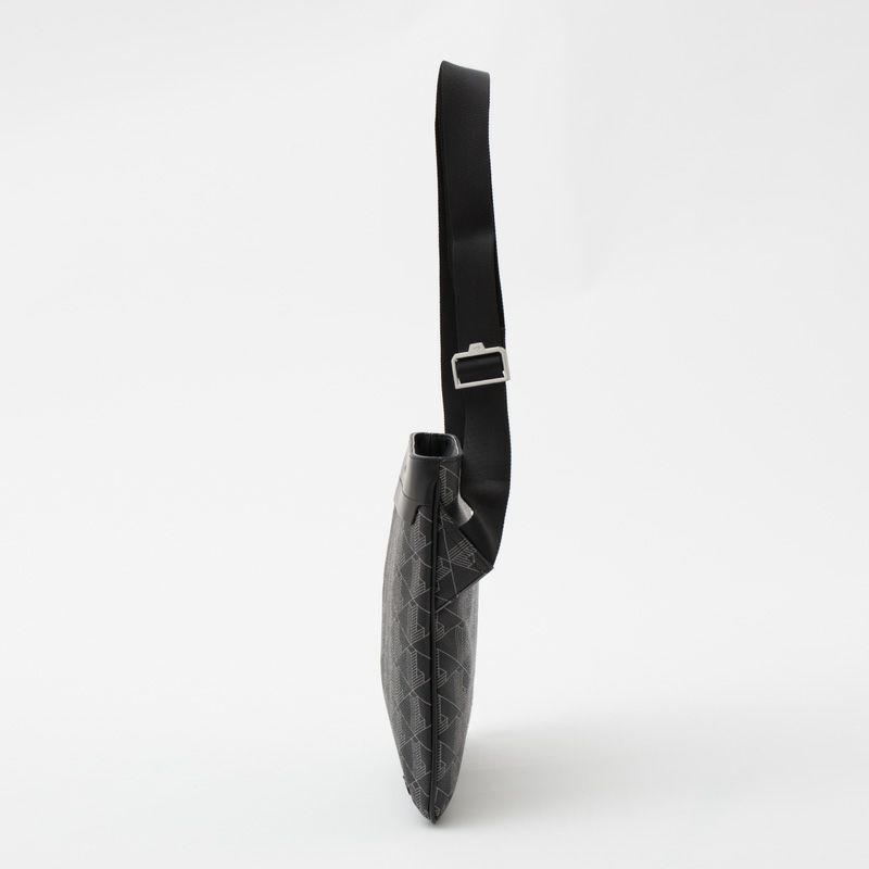 ラコステから、薄マチ仕様のスクエアショルダーバッグです。豊かなシボ感をエンボスで表現したPVC素材にブランドイニシャルをモチーフとしたモノグラム柄を配置。マチのないフラットなスクエア形状は、サコッシュのように取り回しがしやすくアーバンなスタイリングにマッチします。