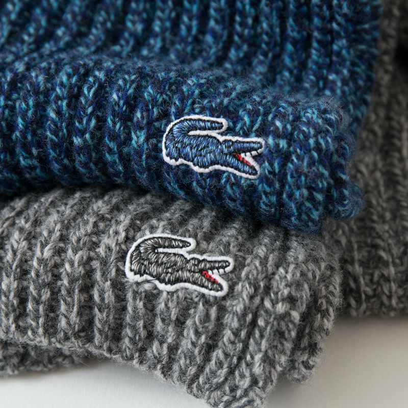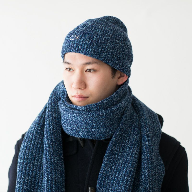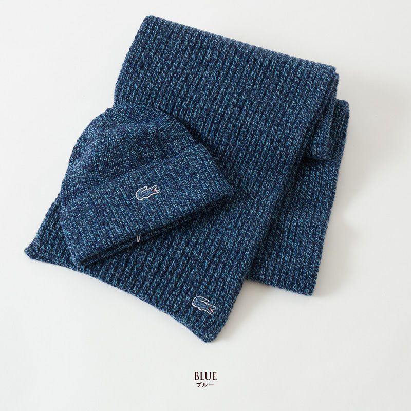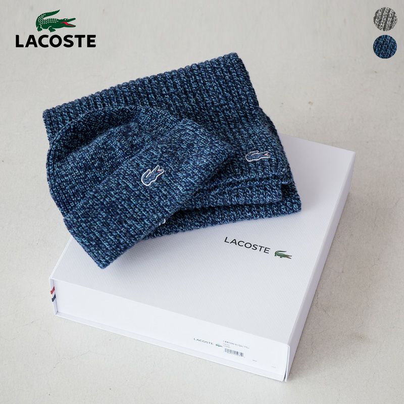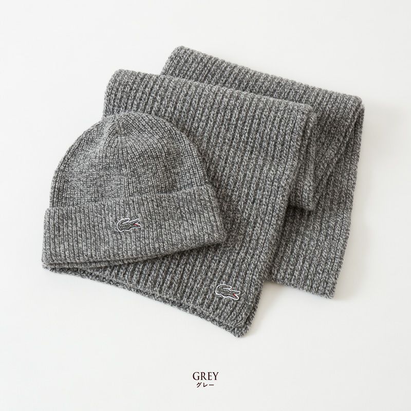ラコステ リブ ヘザー ウール ビーニー&スカーフ セット RB7399 フランス製 マフラー ニット帽 ギフトボックス付き