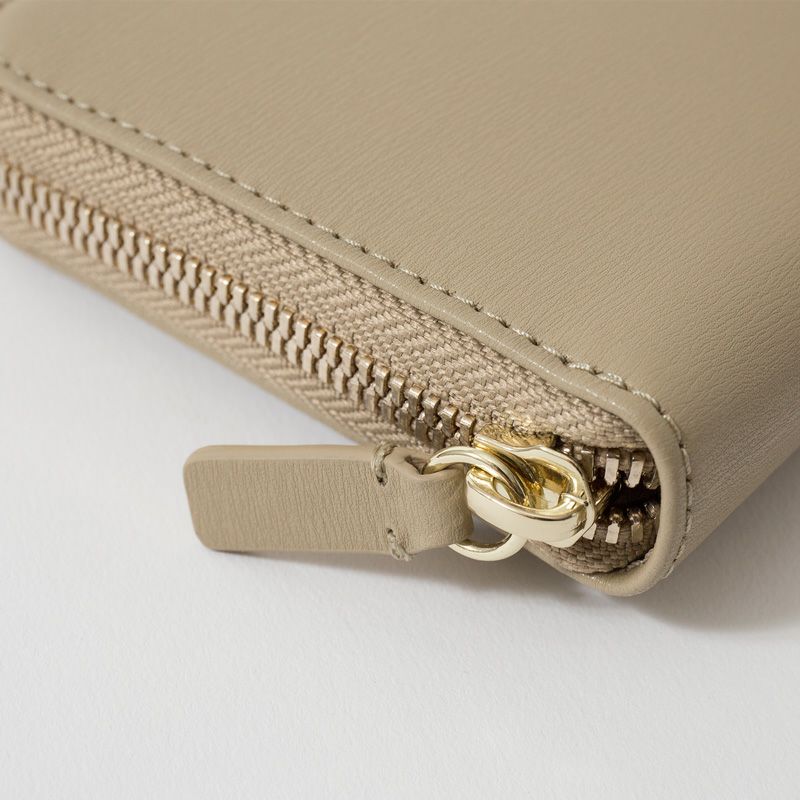 ヌーディーカラーとゴールドの組み合わせでリュクスな雰囲気をまとわせたロングウォレット。さらりとした手触りが気持ちいい上質なスムースレザーを使用し、おなじみのワニマークは金色のメタルプレートで華やかさを演出しています。たっぷりマチのある札入れをはじめ、8枚収納できるカード入れ、レシートなど長い紙類が収納できる2つの仕切り、さらにコインポケットを備えた収納力も魅力。オリジナルBOXが付属するので大切な人へのギフトとしてもサマになるアイテムです。