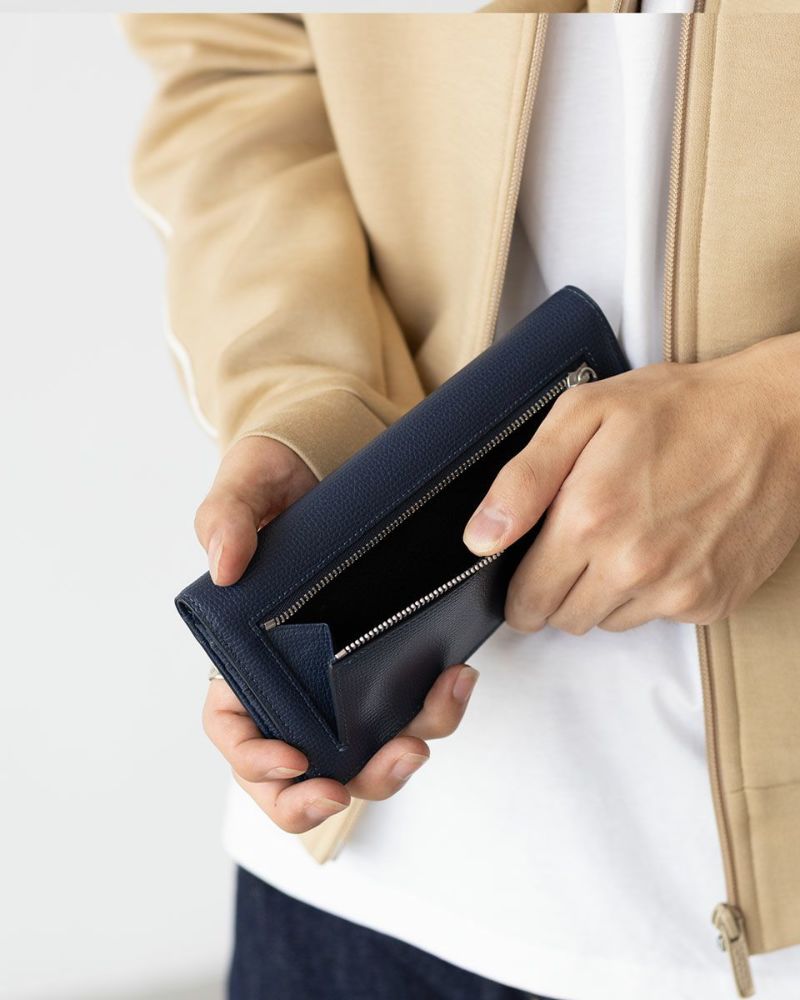 なめらかな肌触りの上質レザーを使い、シックな雰囲気に仕上げたロングウォレット。