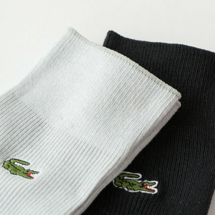 ラコステの象徴であるワニ刺繍をワンポイントに飾った、クルー丈のシンプルソックス。