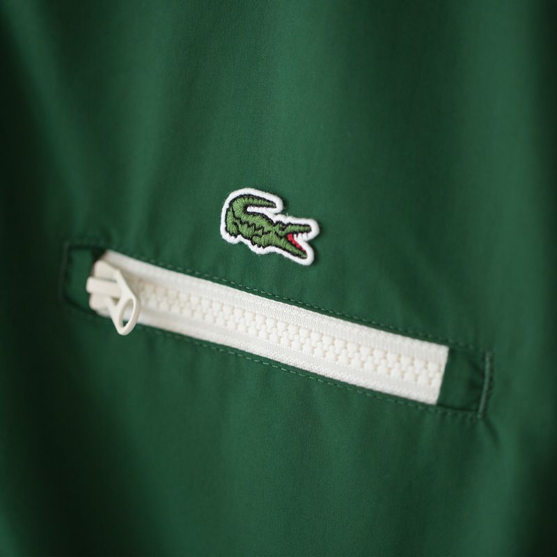 ラコステのヘリテージから着想を得たデザイン、リサイクルポリエステルタフタ素材を使用。クラシックなデザインながら、メッシュ裏地と脇下のベンチレーションホールによる通気性や撥水性など、タウンユースウェアとしての現代機能を備えたLACOSTEらしいジップジャケットです。