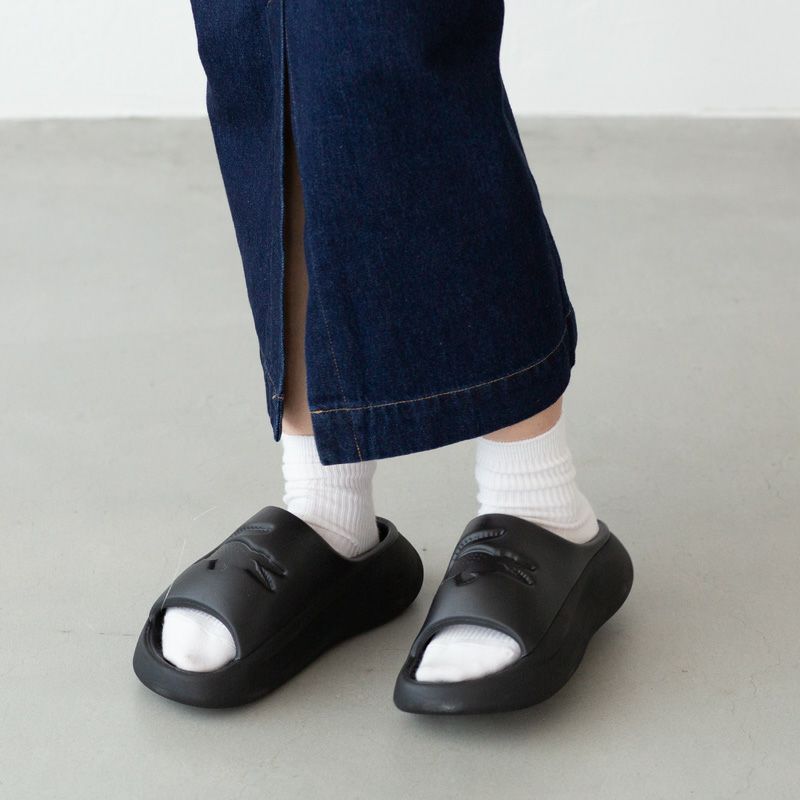 ユニークなボリュームと流線型のフォルム、スポンジさながらのクッション性を備えたEVA素材のスライドサンダル。ラコステのアイコンであるワニロゴは、ビッグなエンボス加工でストラップを飾っています。