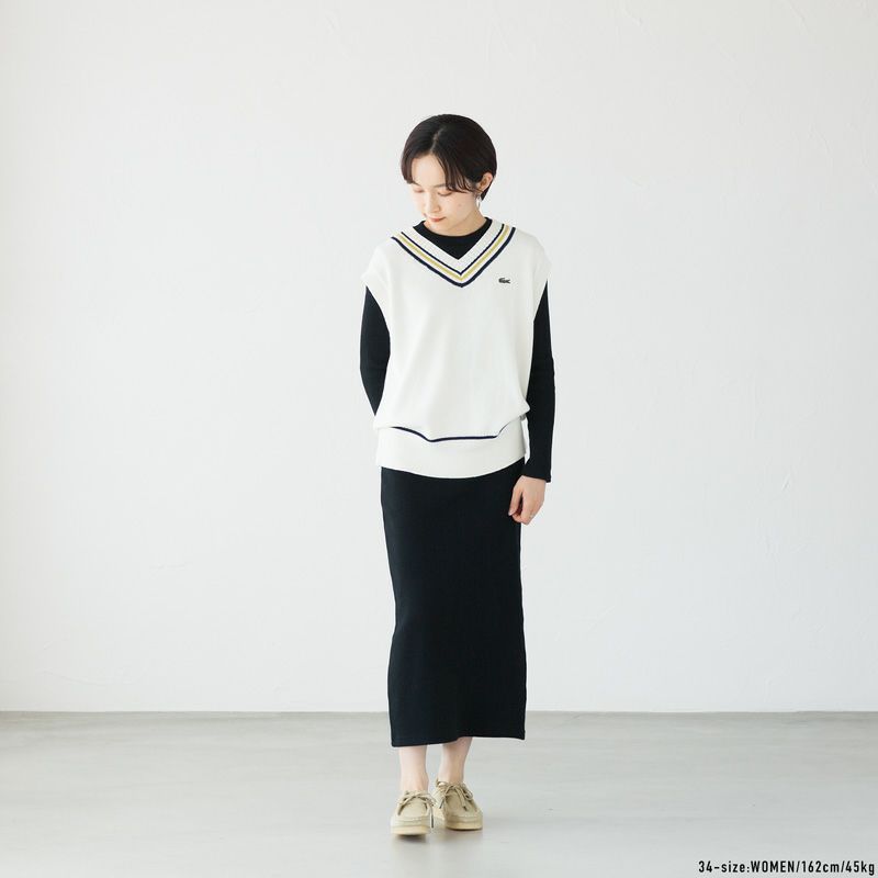ラコステ コットンポリ ニット チルデンベスト LACOSTE AF010J-99 レディース