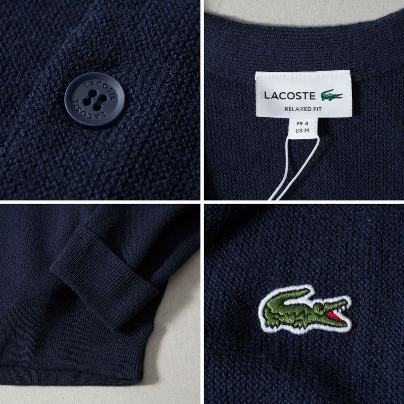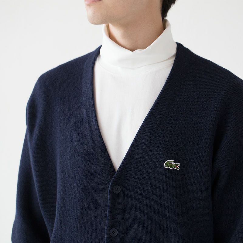 ラコステ ガーター編み Vネック カーディガン LACOSTE AH0397L メンズ ウール ニット