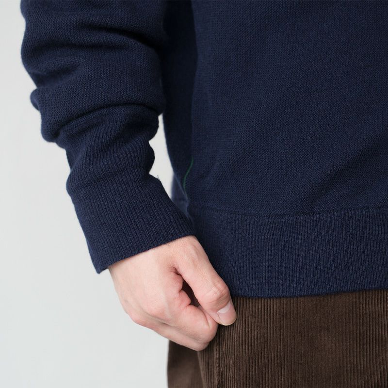 NAVY(ネイビー)のみ、袖口から脇下、裾にかけて緑色のステッチでアクセントあり。